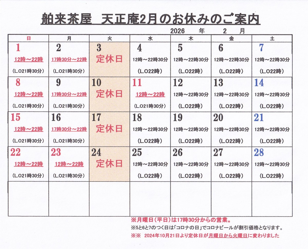 ※2月以降は状況に応じて営業時間の変更もある場合もございます。