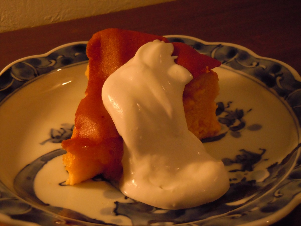 ※手作りポルトガル半熟カステラ 甘さ抑えめの生クリーム添え ¥580