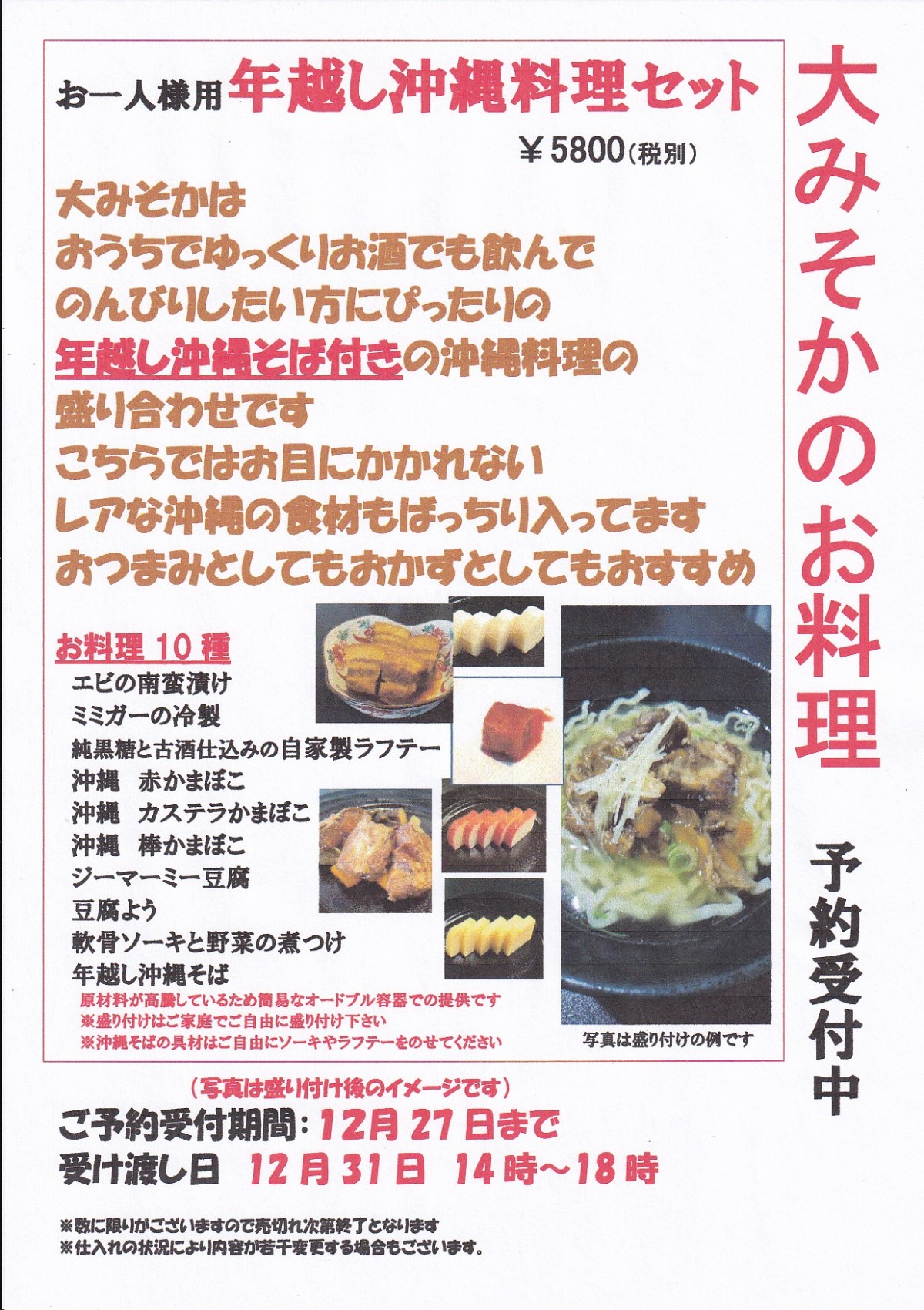 お一人様用 年越し沖縄料理セット ご予約受付中