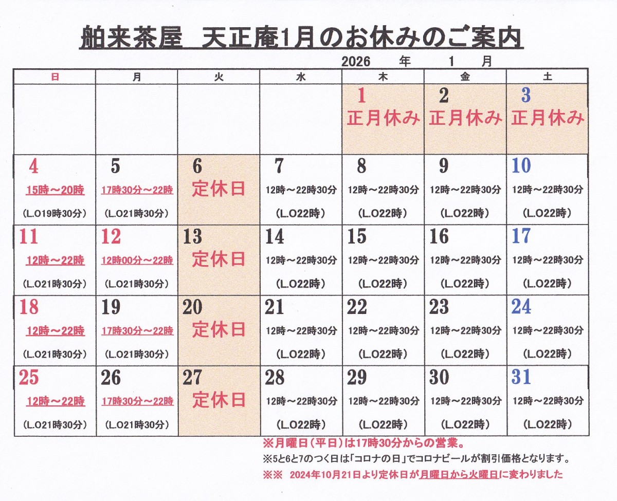※1月以降は状況に応じて営業時間の変更もある場合もございます。
